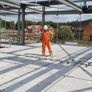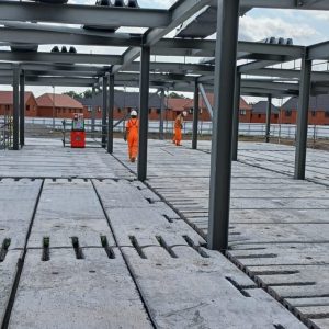 Following the installation of hollowcore flooring units by Lynx Precast Ltd, Beresford’s stepped in to stitch the floors together with certified in-situ concrete, shuttering, and loose reinforcement – while also completing the tie requirements to the supporting steel frame.