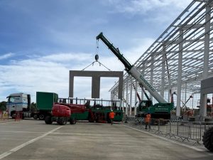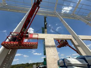 Many thanks to our site team for sharing a few photos of our Kettering dock works for the brilliant team at FP McCann. Here, we’re setting out and installing a precast concrete dock levelling system – the front and rear walls, slabs and prowall for this soon to be distribution centre.